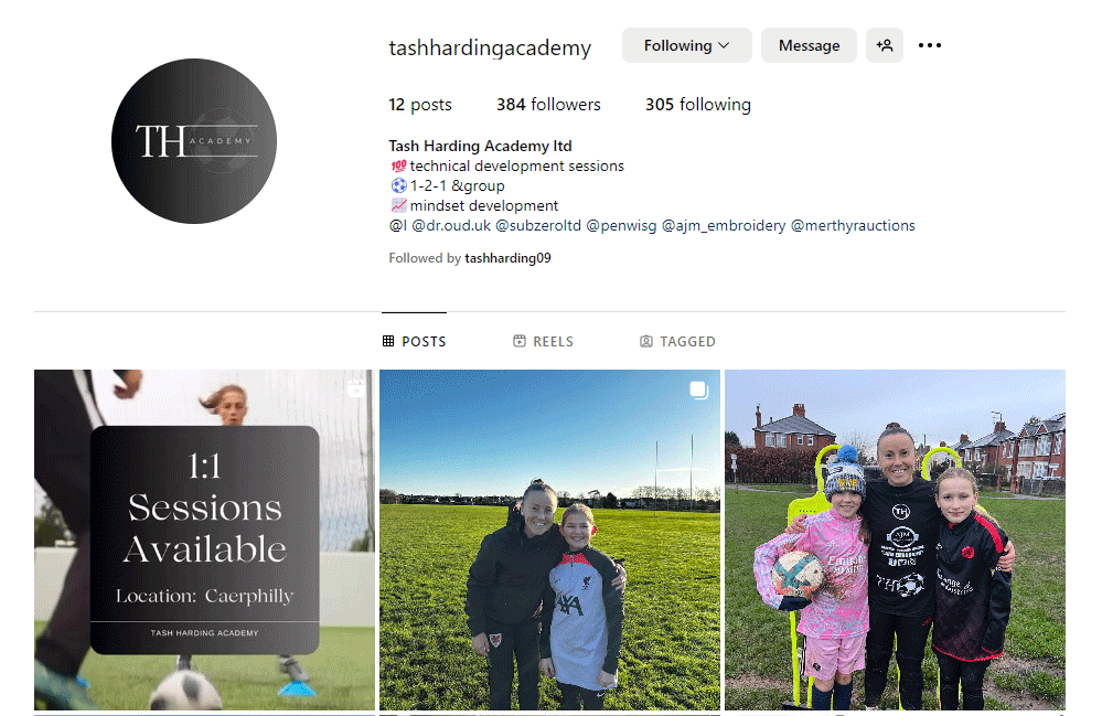 We sponsored Wales International (103 caps), Cardiff City, Bristol City, Man City, Liverpool, Reading, & Villa footballer Natasha Harding with the opening of the Tash Harding Academy.